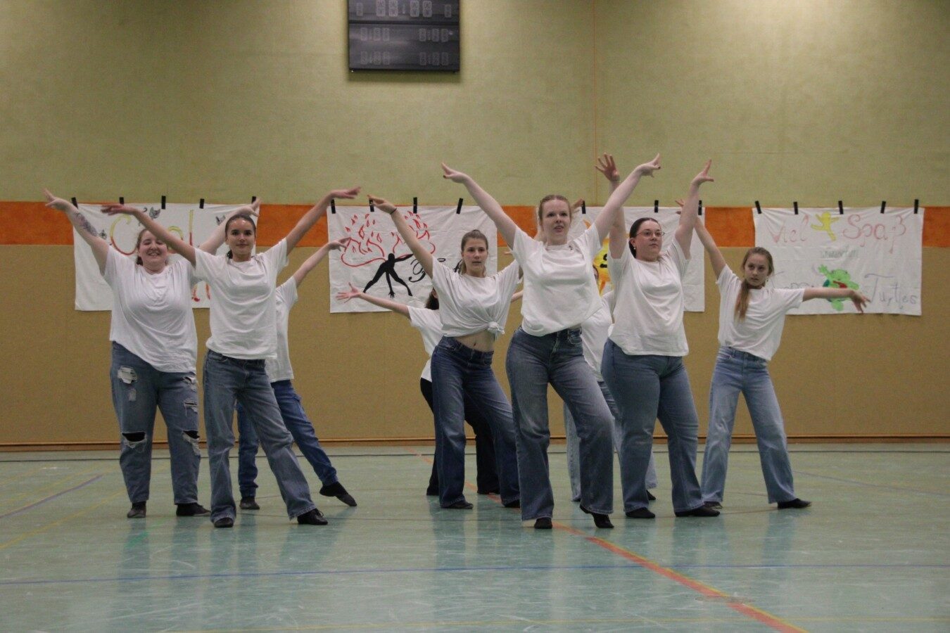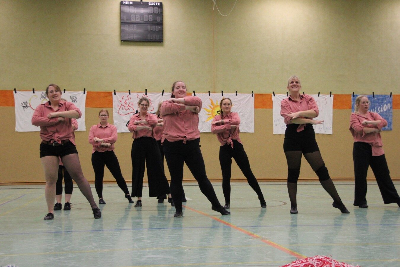Den Startschuss übernahmen die Schmetterling, mit 4-6 Jahren die Jüngsten in der Abteilung, mit dem den Wellermann-Tanz. Es folgten die Cool-Cats und Fireflies bevor die Turnerinnen zeigten, dass man auch eine Piratentanz verturnen kann. Die Sunnies, Tapsi Turtles und Dancevision zeigten anspruchsvolle Tänze mit vielen Aufstellungswechseln zu gemixter Musik. So vertanzten z. B. die Damen von Dancevision „The Evolution of Dance“ bei dem die verschiedenen Tanzstile der letzten Jahrzehnte bis in die Neuzeit aufeinander folgen. Auch die Sunnies wussten mit ihrem Sia-Mix zu überzeugen.